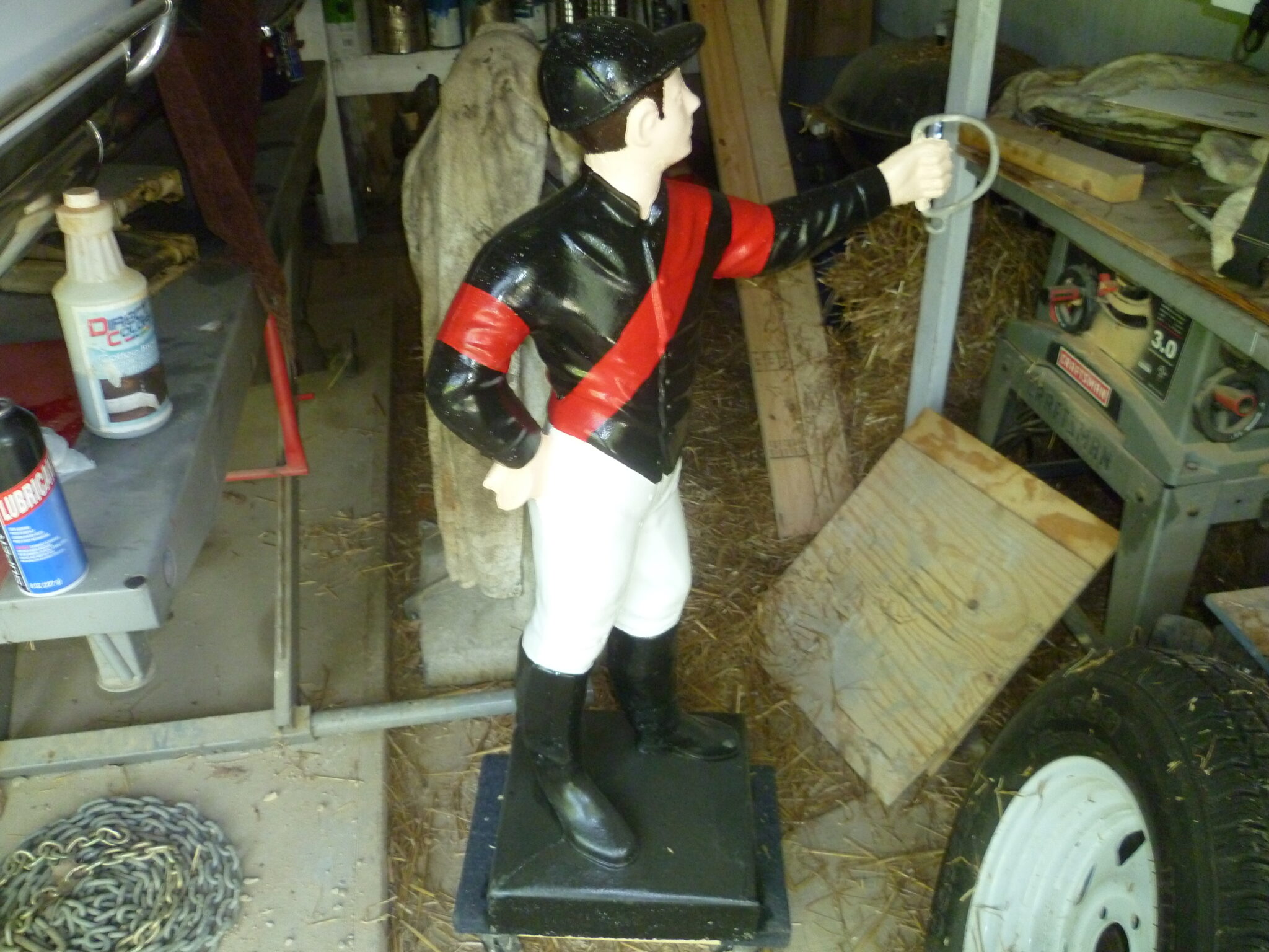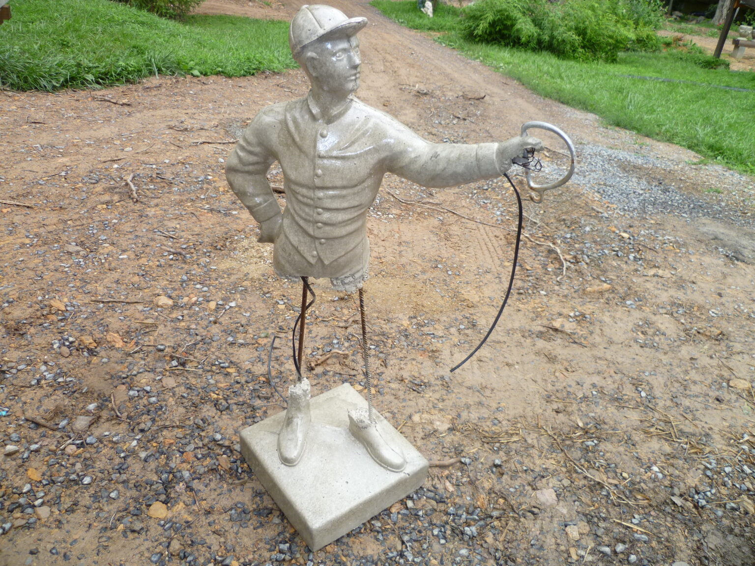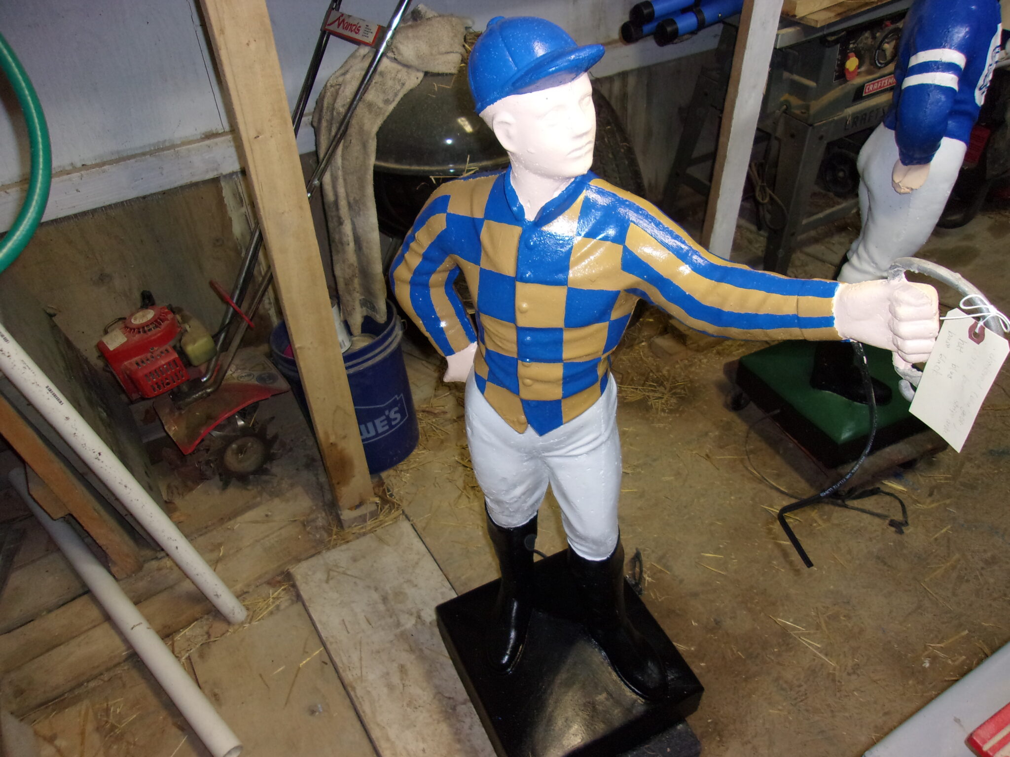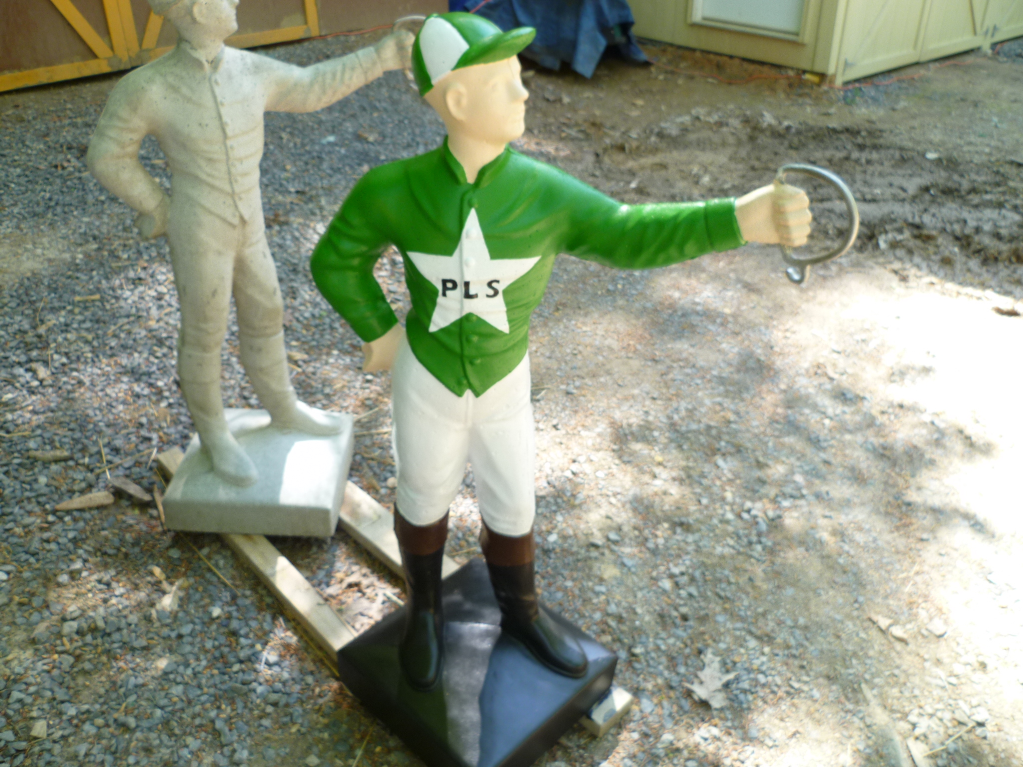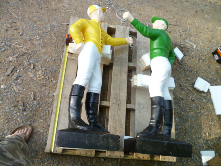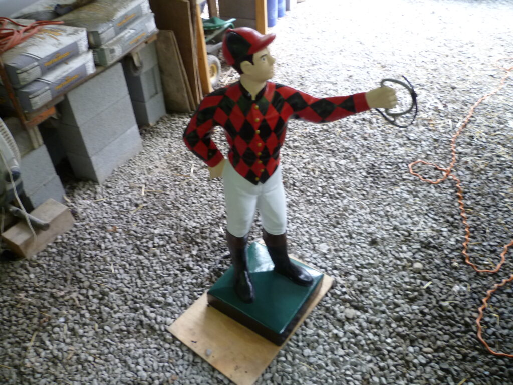 We put a lot of extra work into reinforcing our jockeys.  Look at the image (top of this page) and notice his left ankle is completely cracked.  He was backed into by a delivery driver, but is still upright.