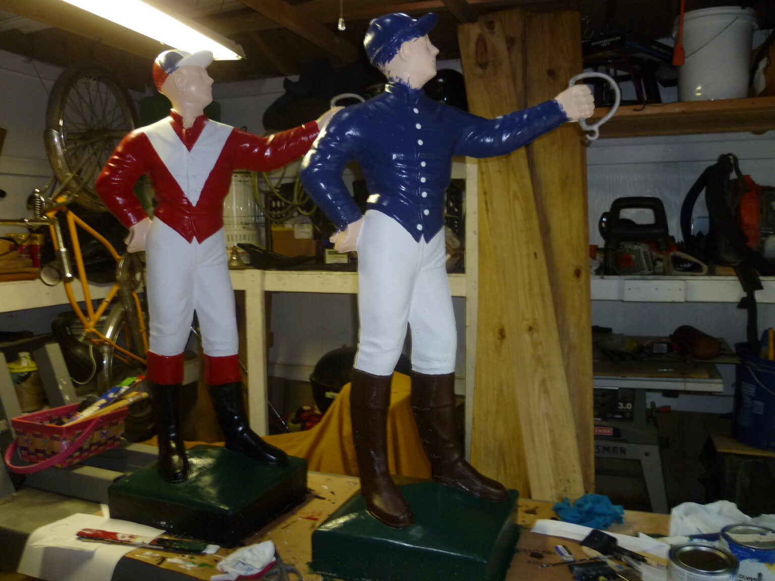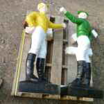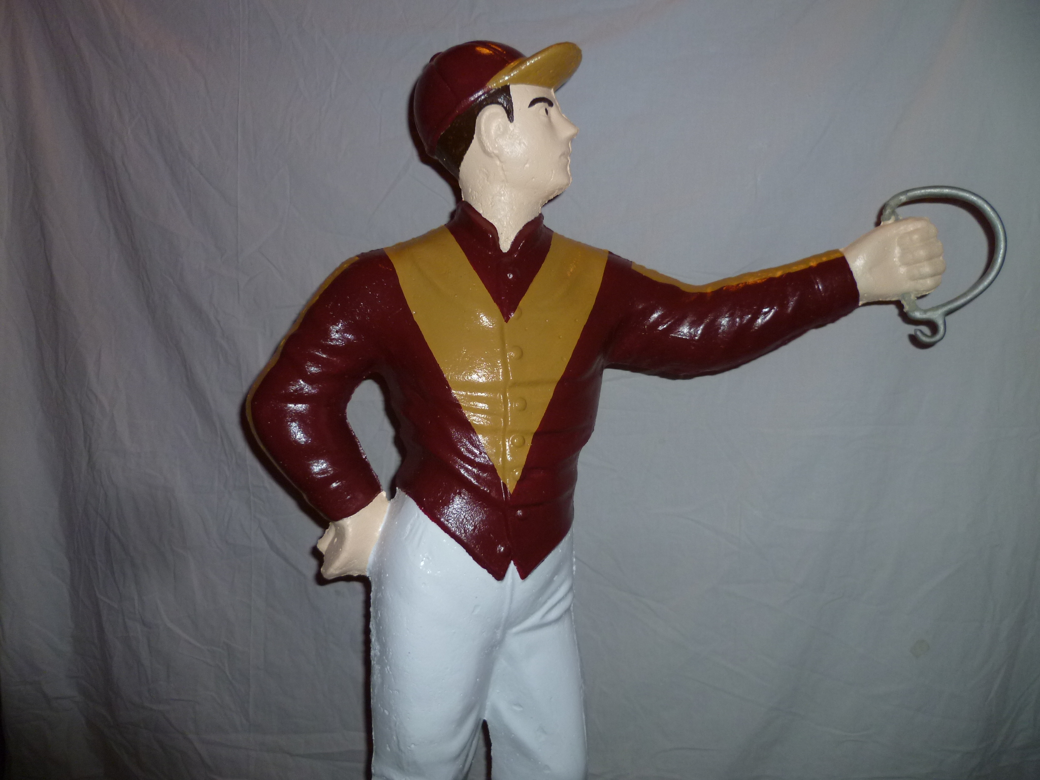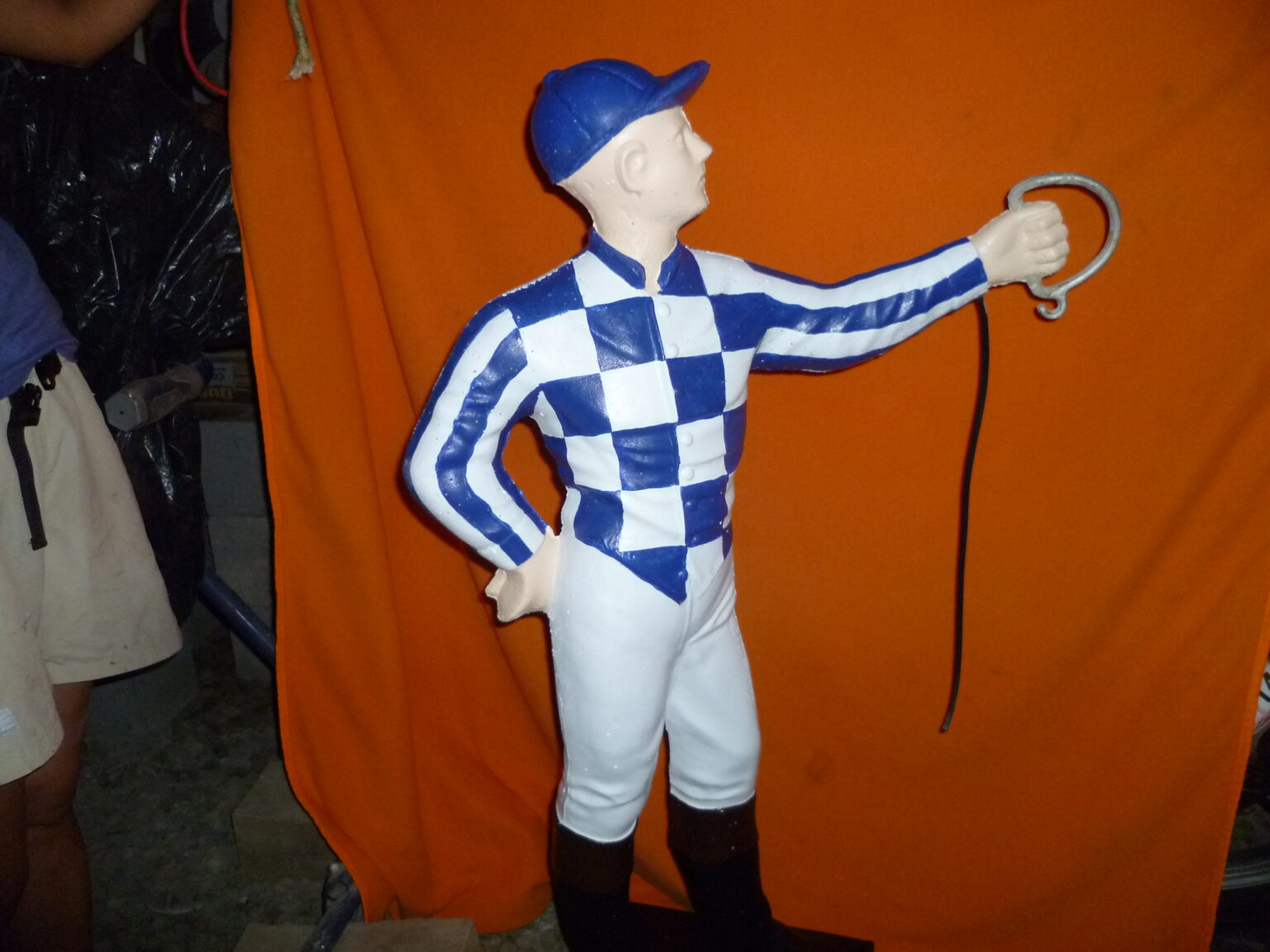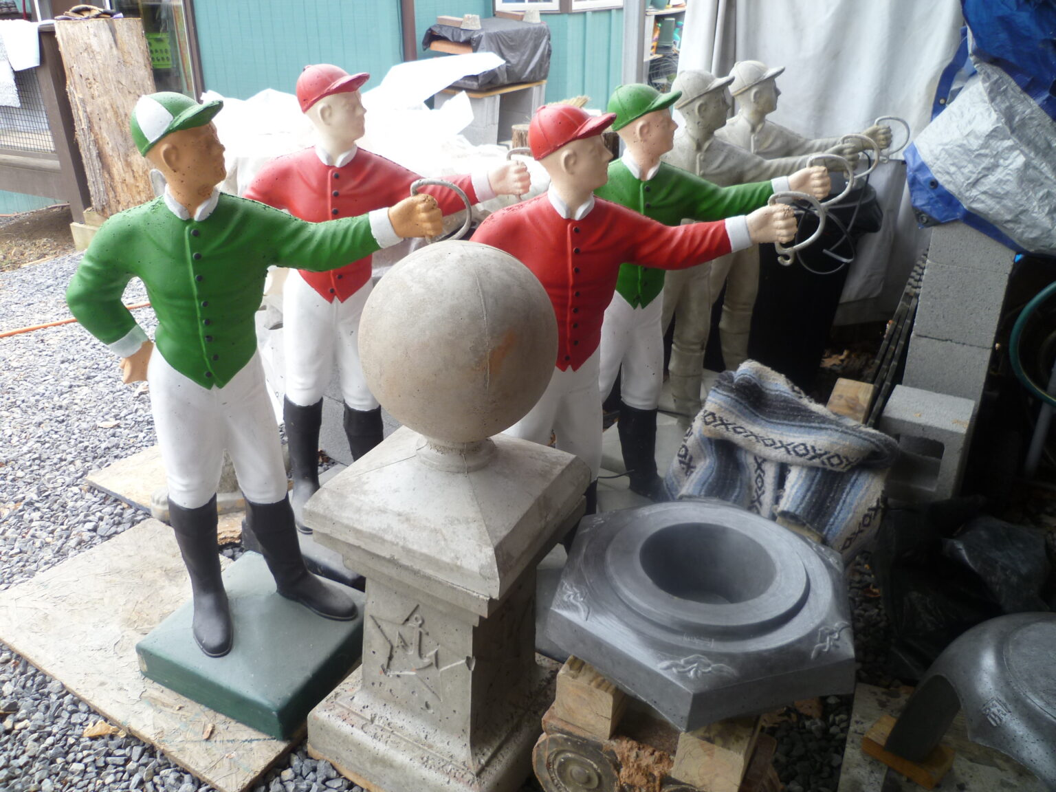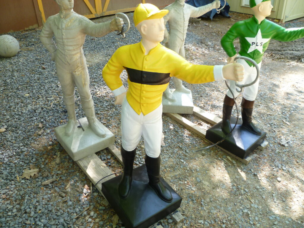 We put a lot of extra work into reinforcing our jockeys.  Look at the image (top of this page) and notice his left ankle is completely cracked.  He was backed into by a delivery driver, but is still upright.