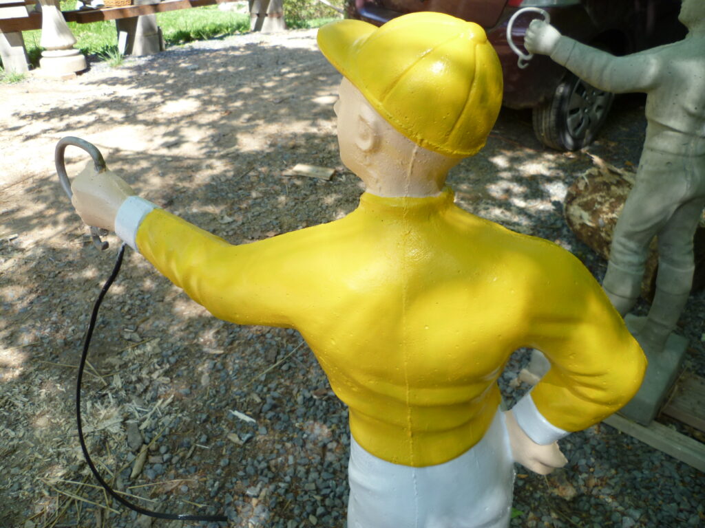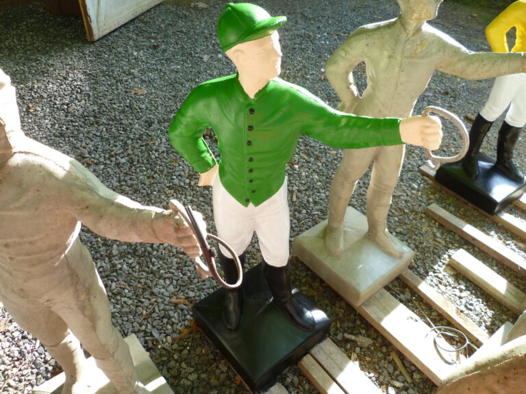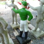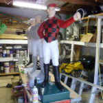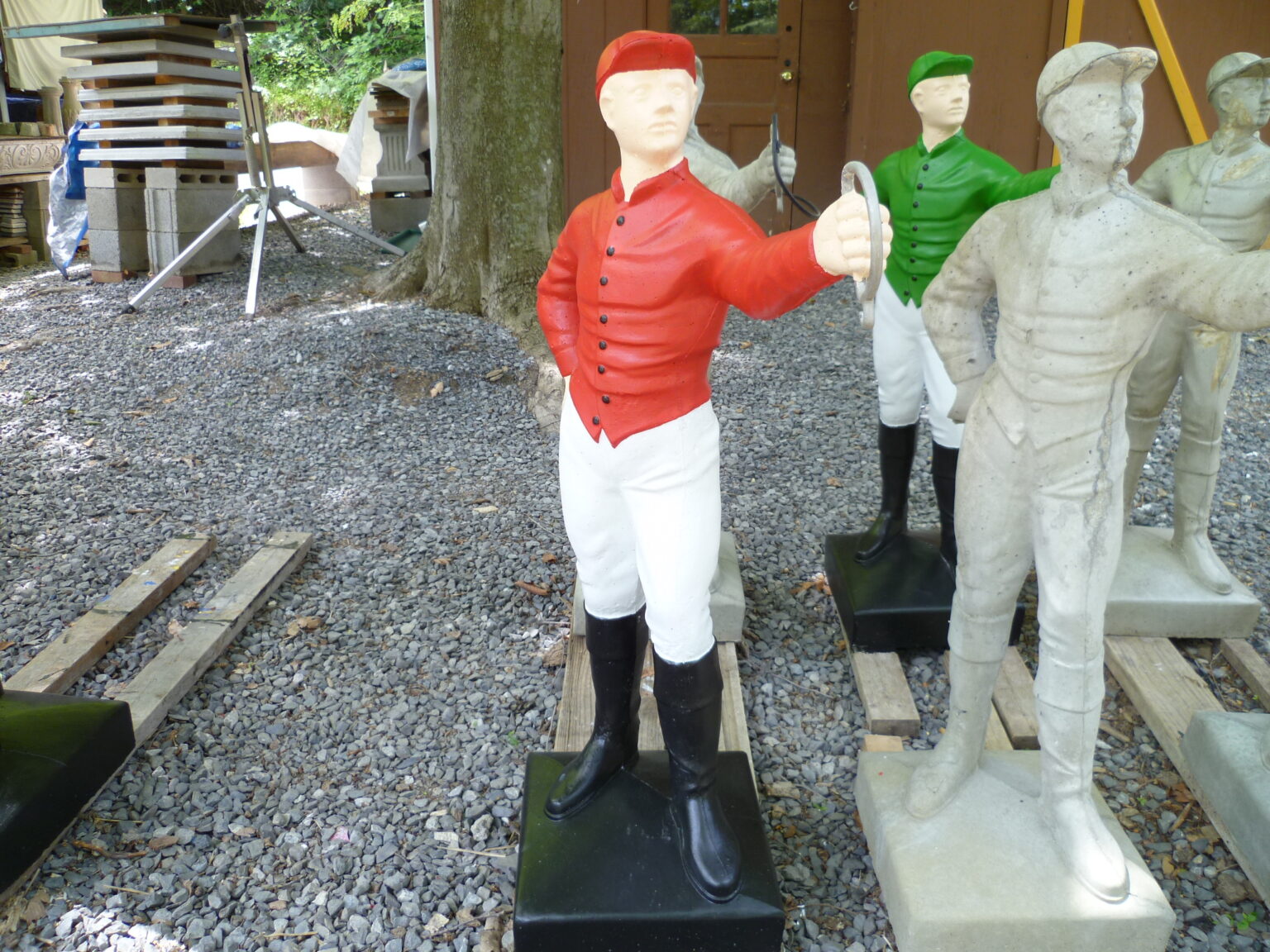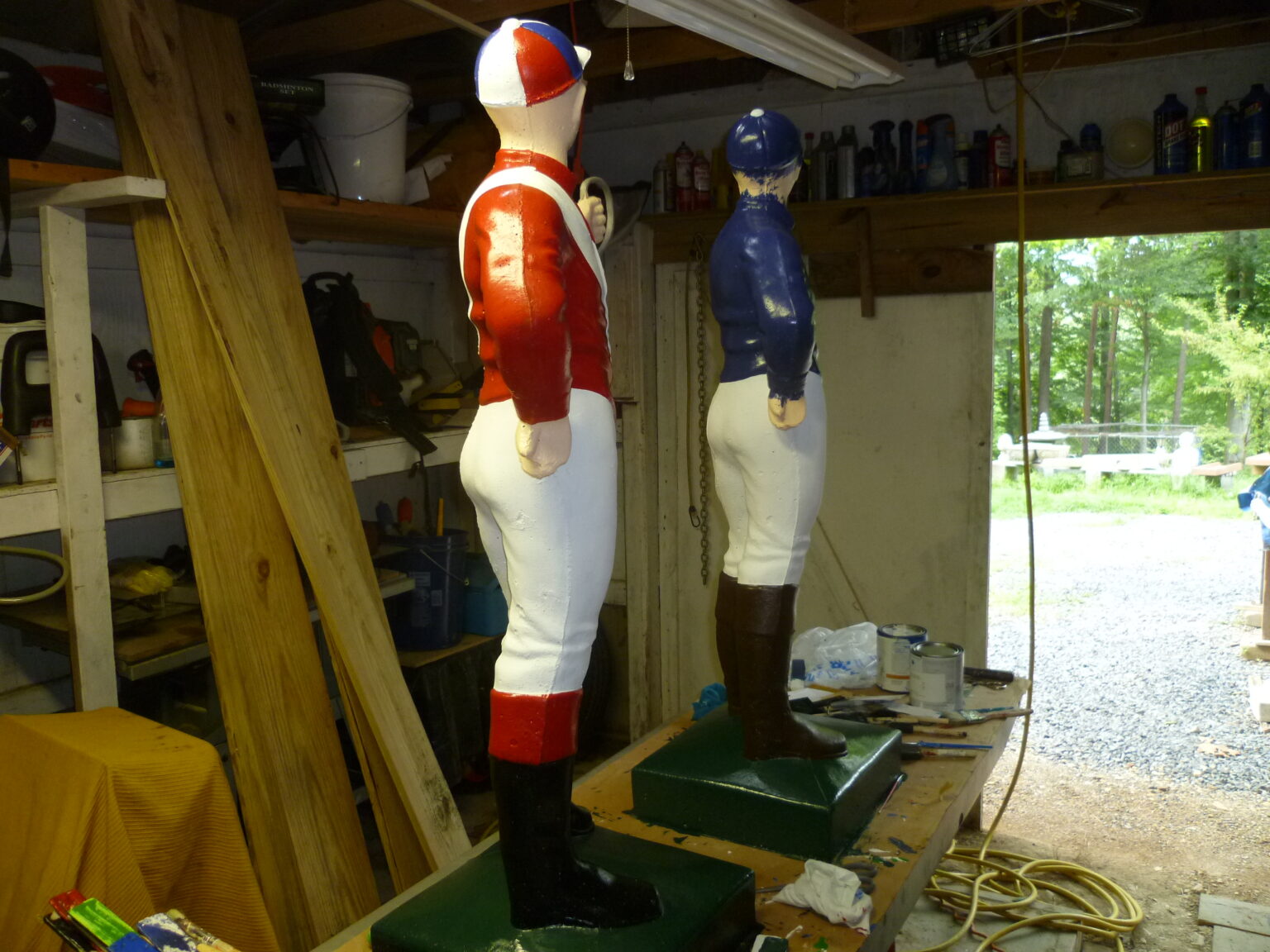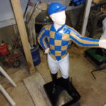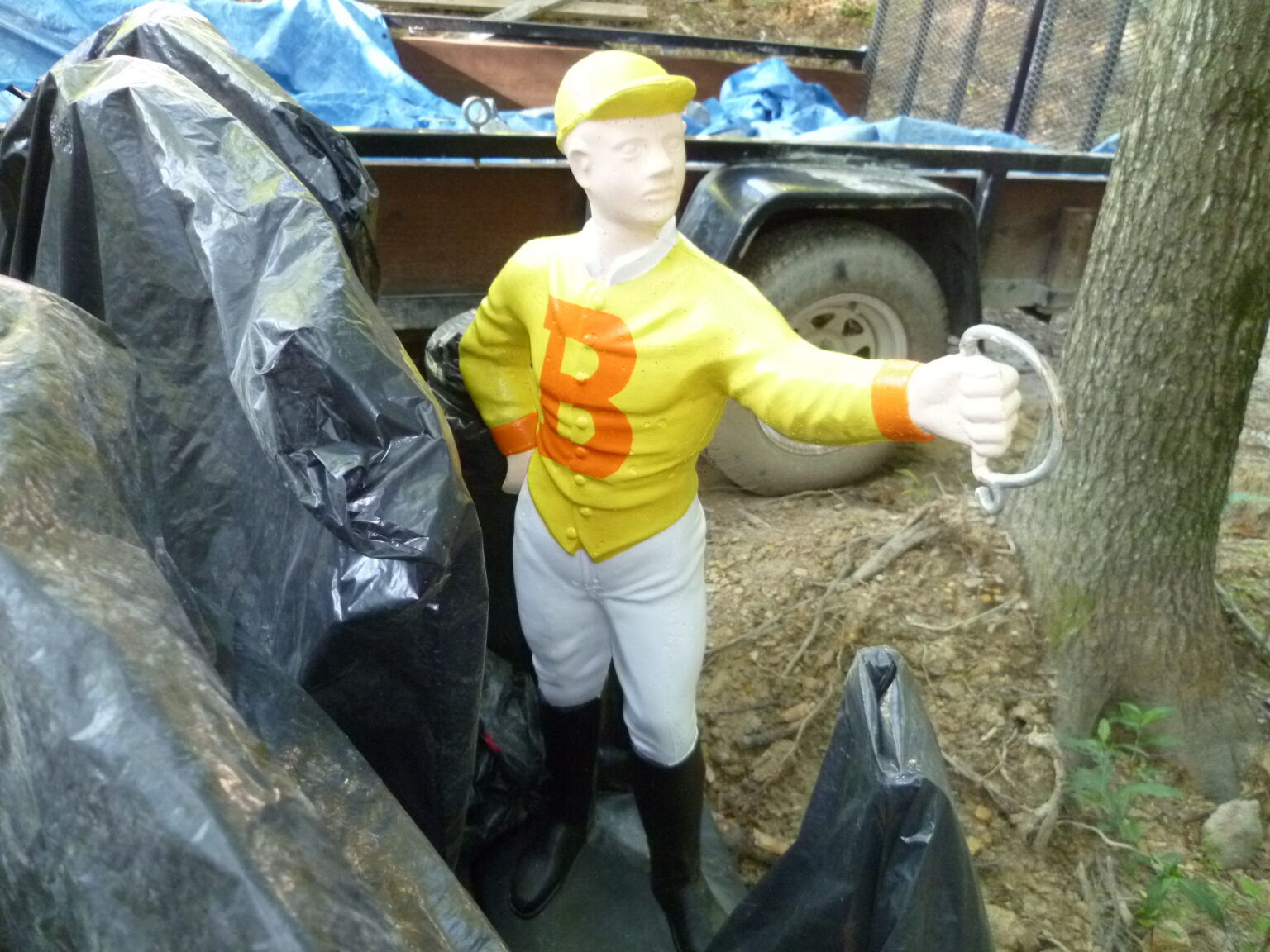 We put a lot of extra work into reinforcing our jockeys.  Look at the image (top of this page) and notice his left ankle is completely cracked.  He was backed into by a delivery driver, but is still upright.