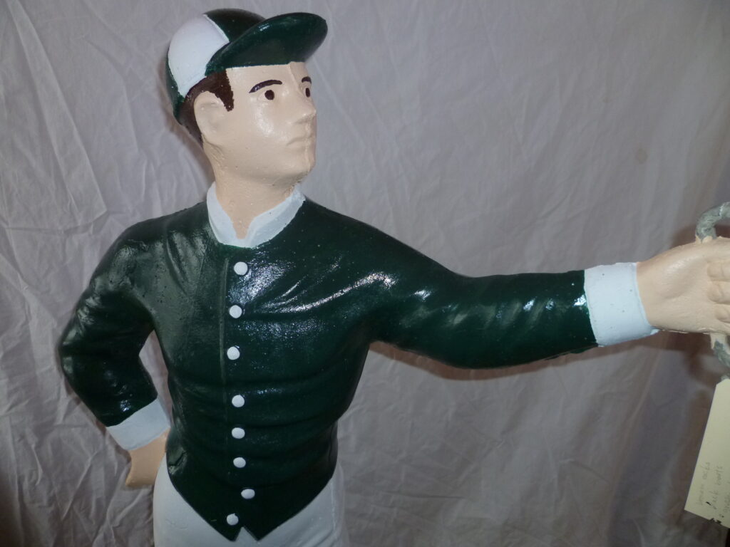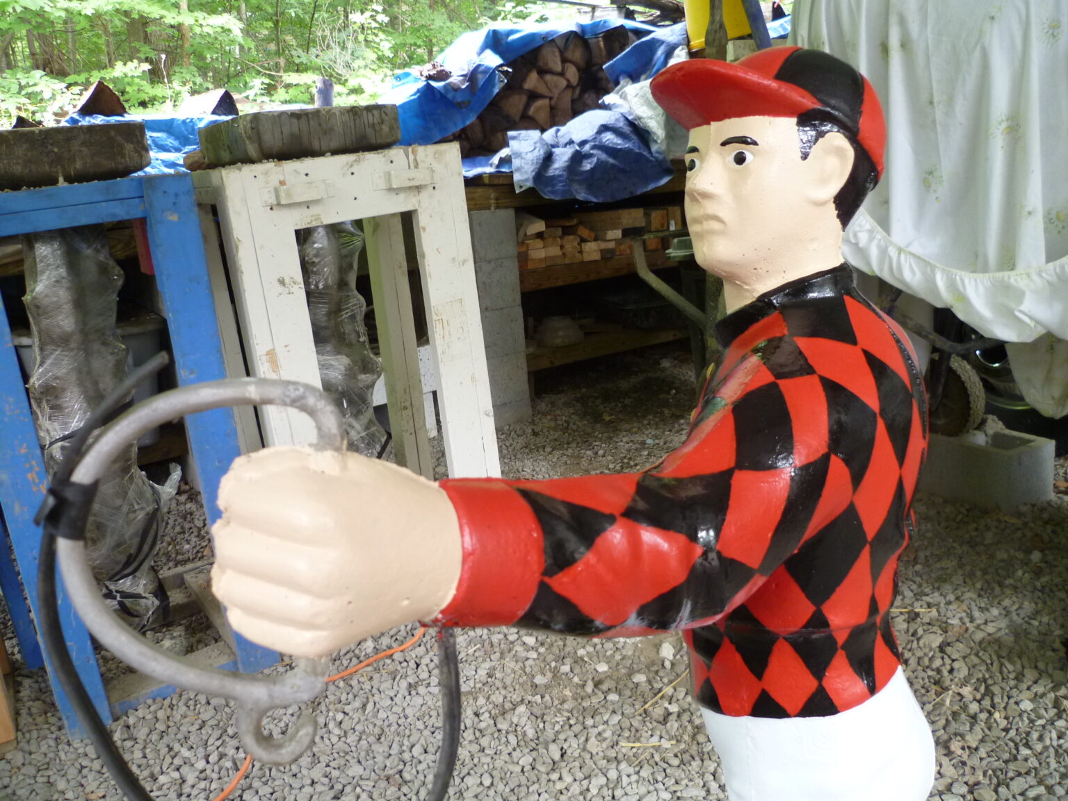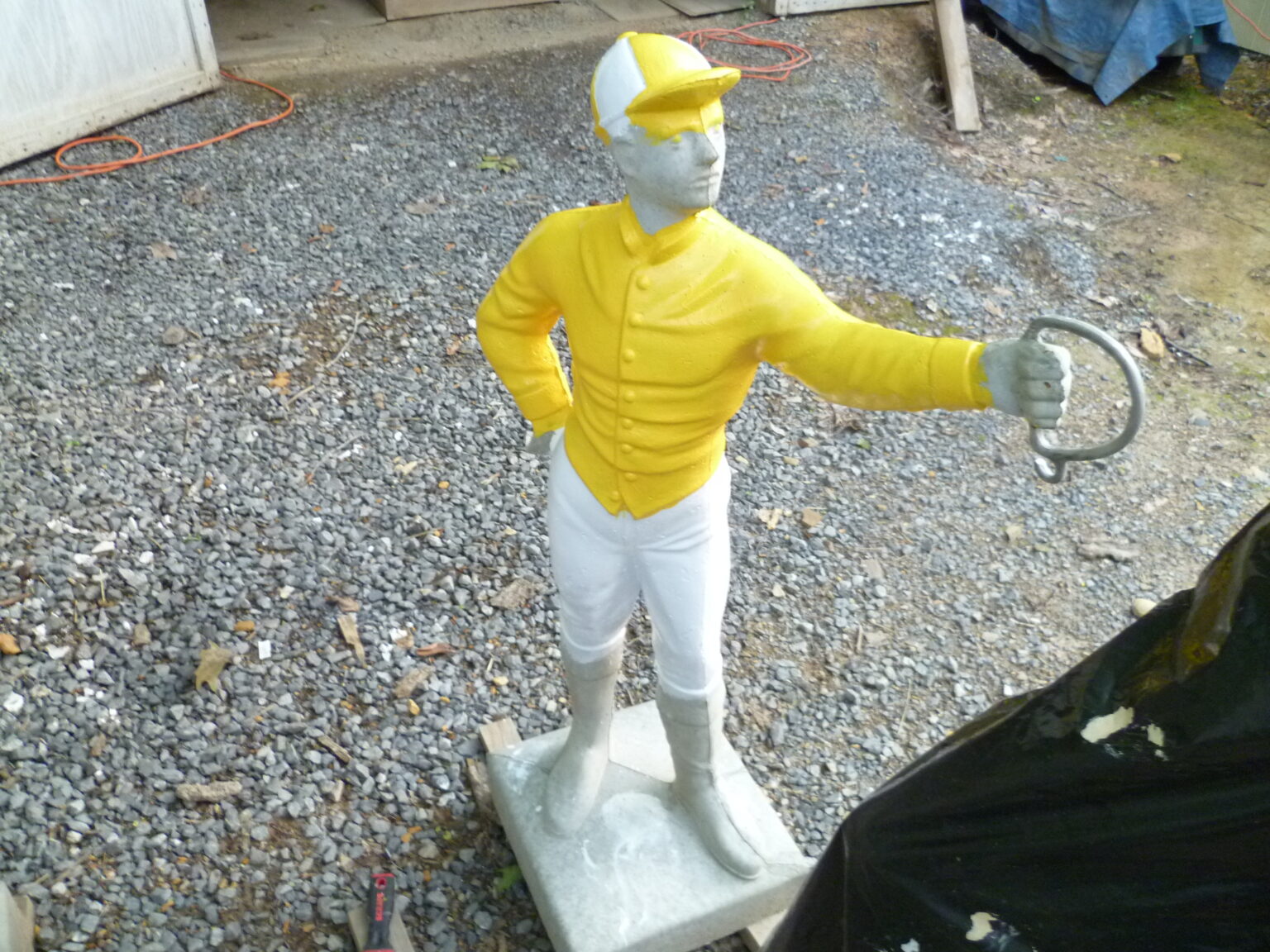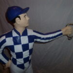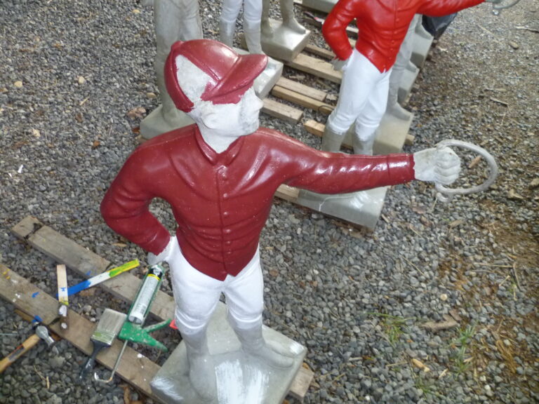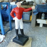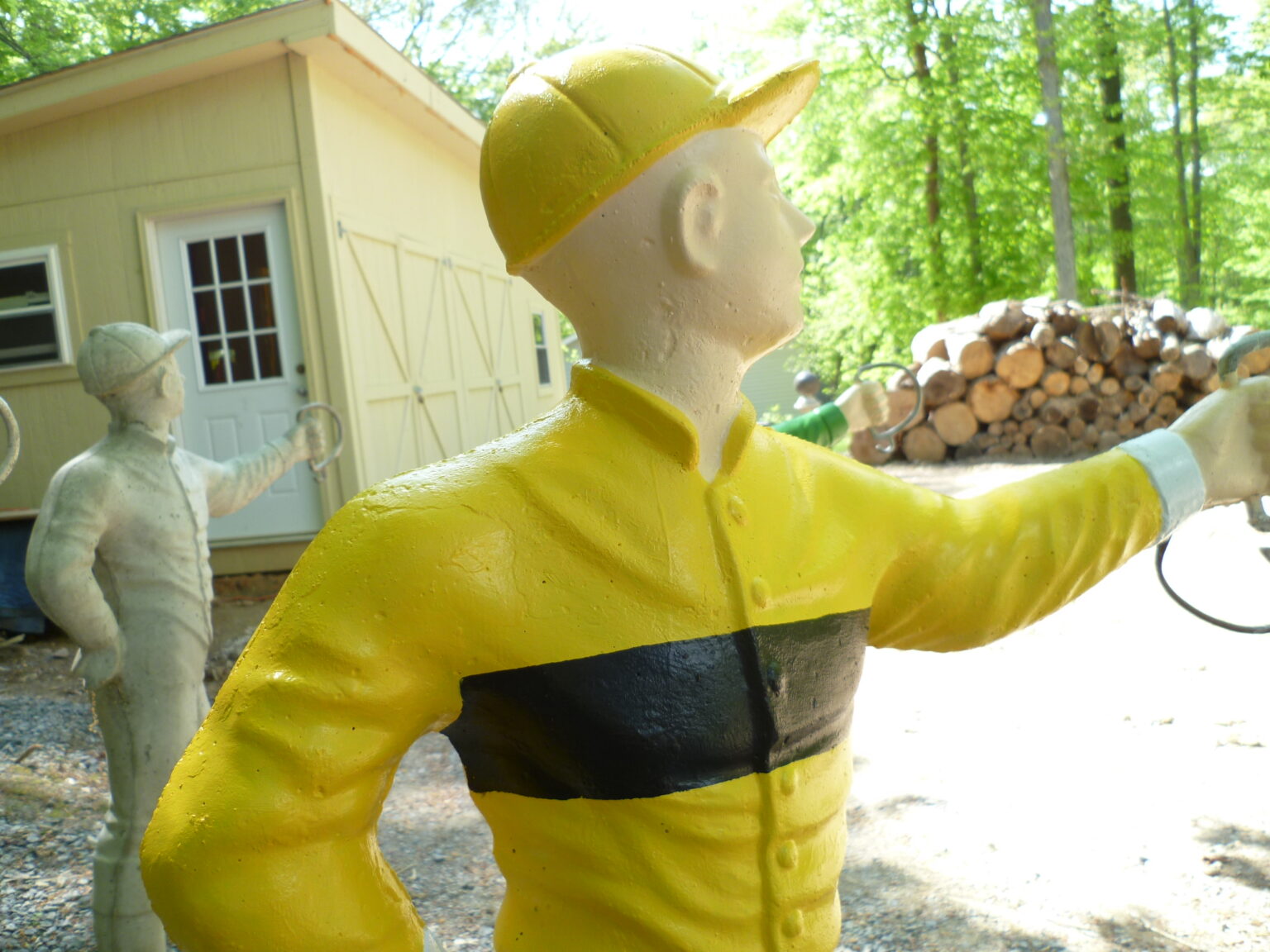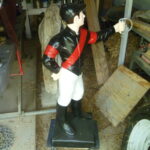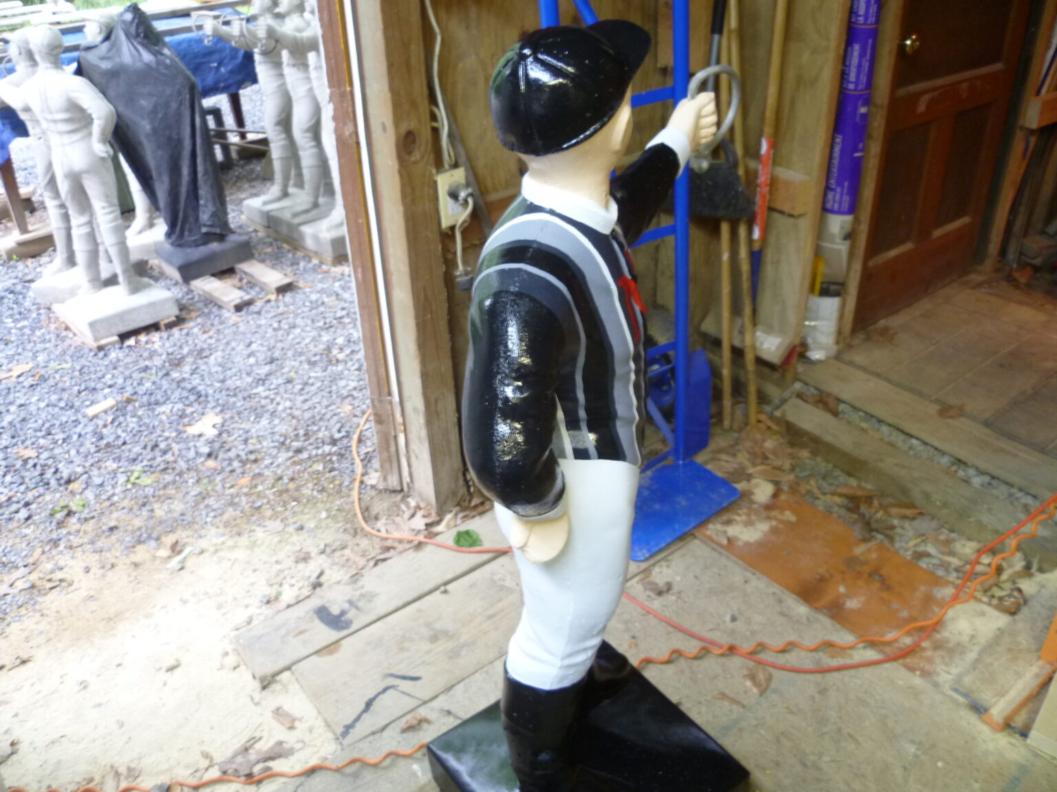 We put a lot of extra work into reinforcing our jockeys.  Look at the image (top of this page) and notice his left ankle is completely cracked.  He was backed into by a delivery driver, but is still upright.