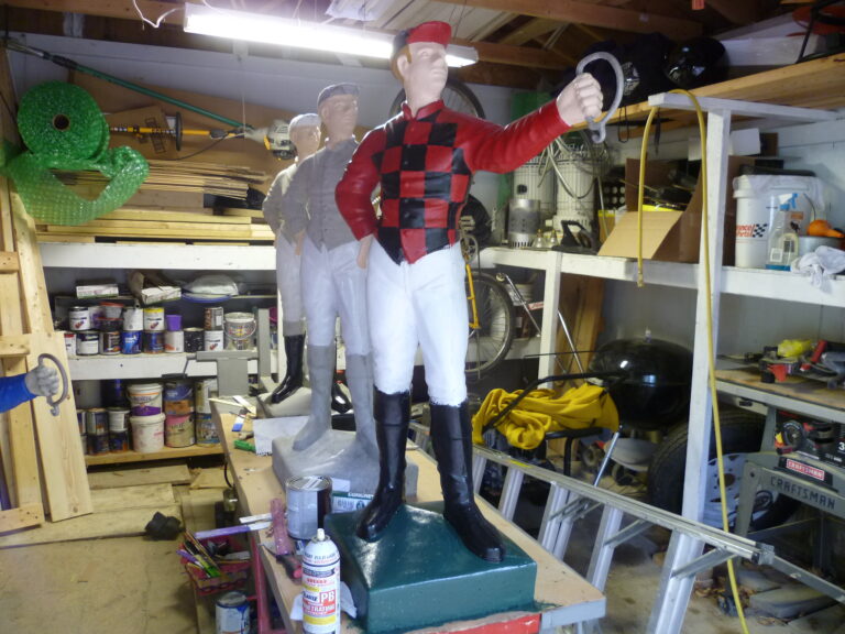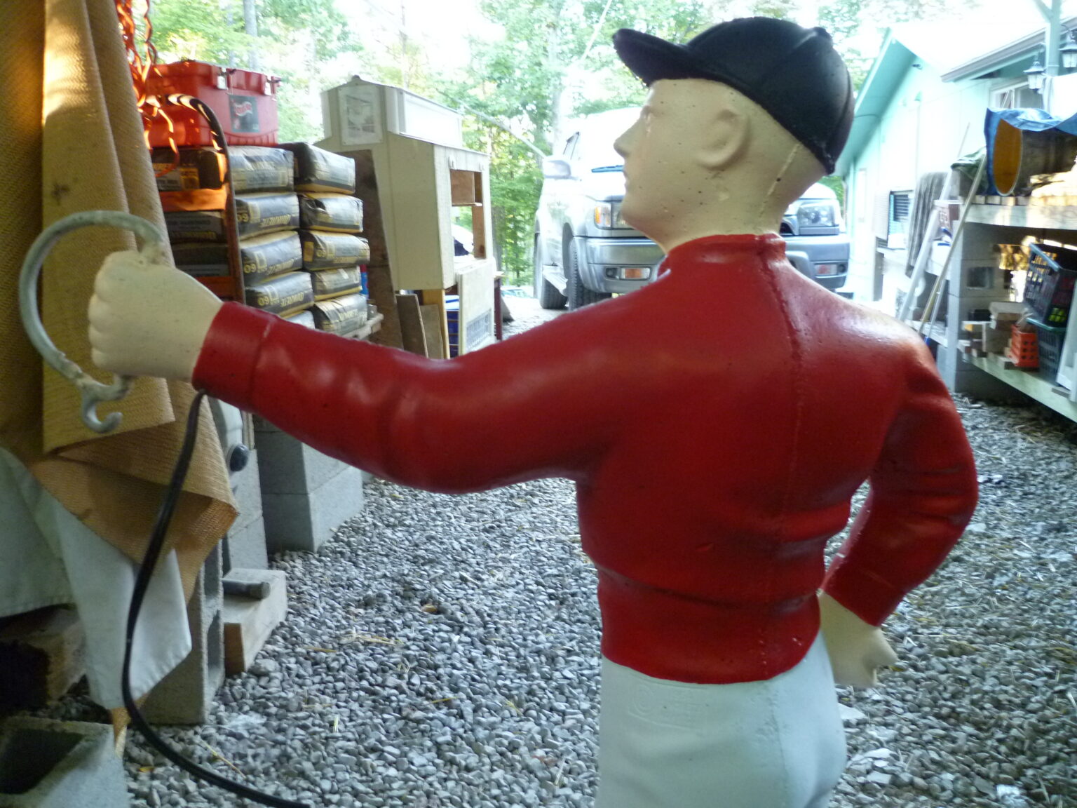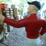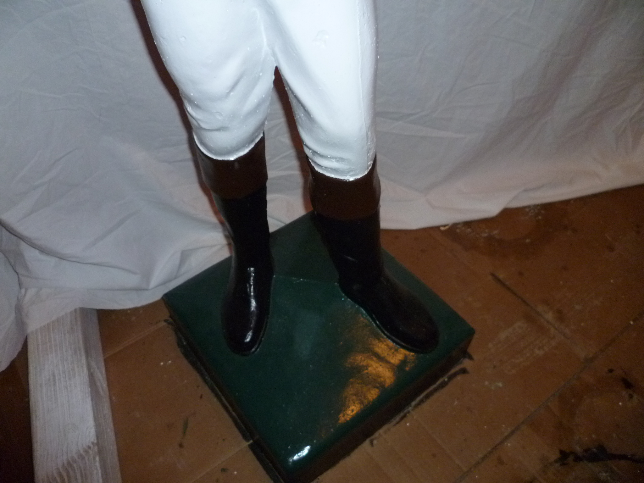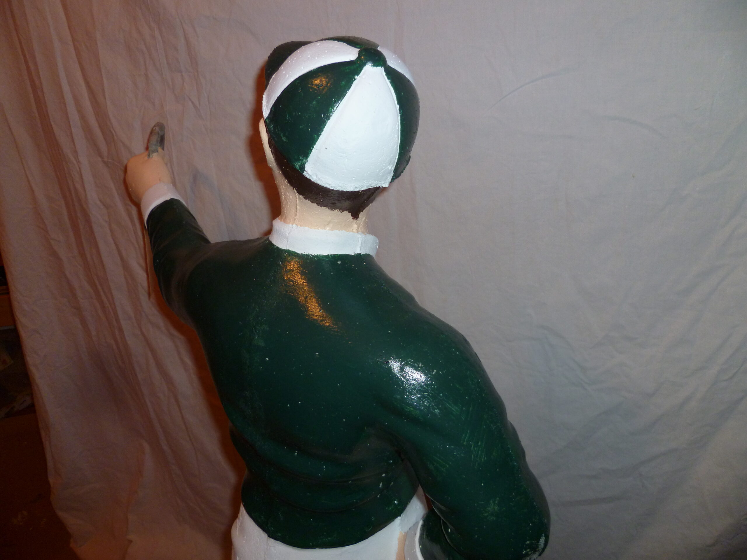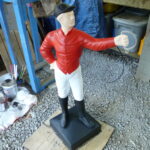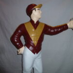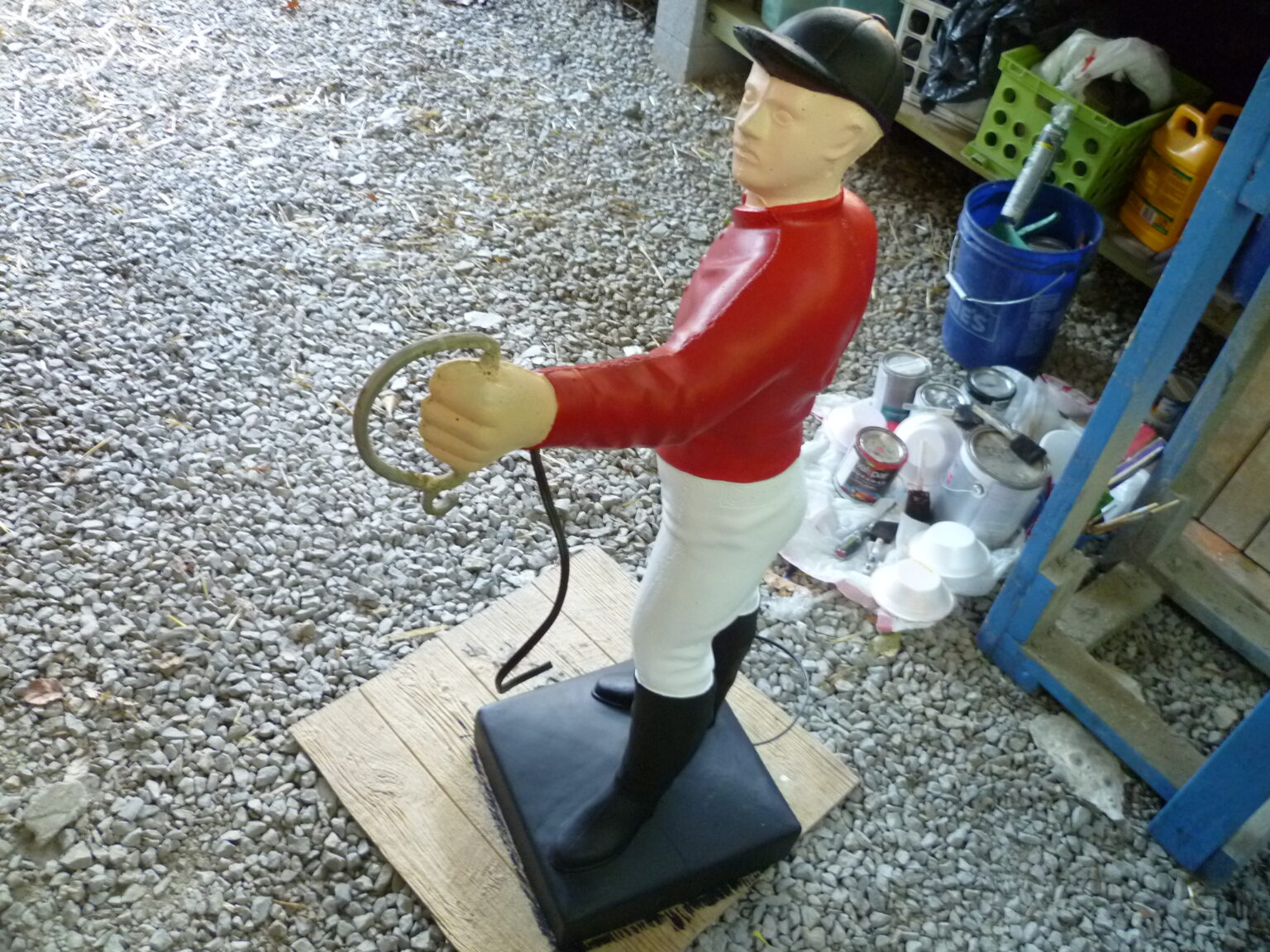 We put a lot of extra work into reinforcing our jockeys.  Look at the image (top of this page) and notice his left ankle is completely cracked.  He was backed into by a delivery driver, but is still upright.