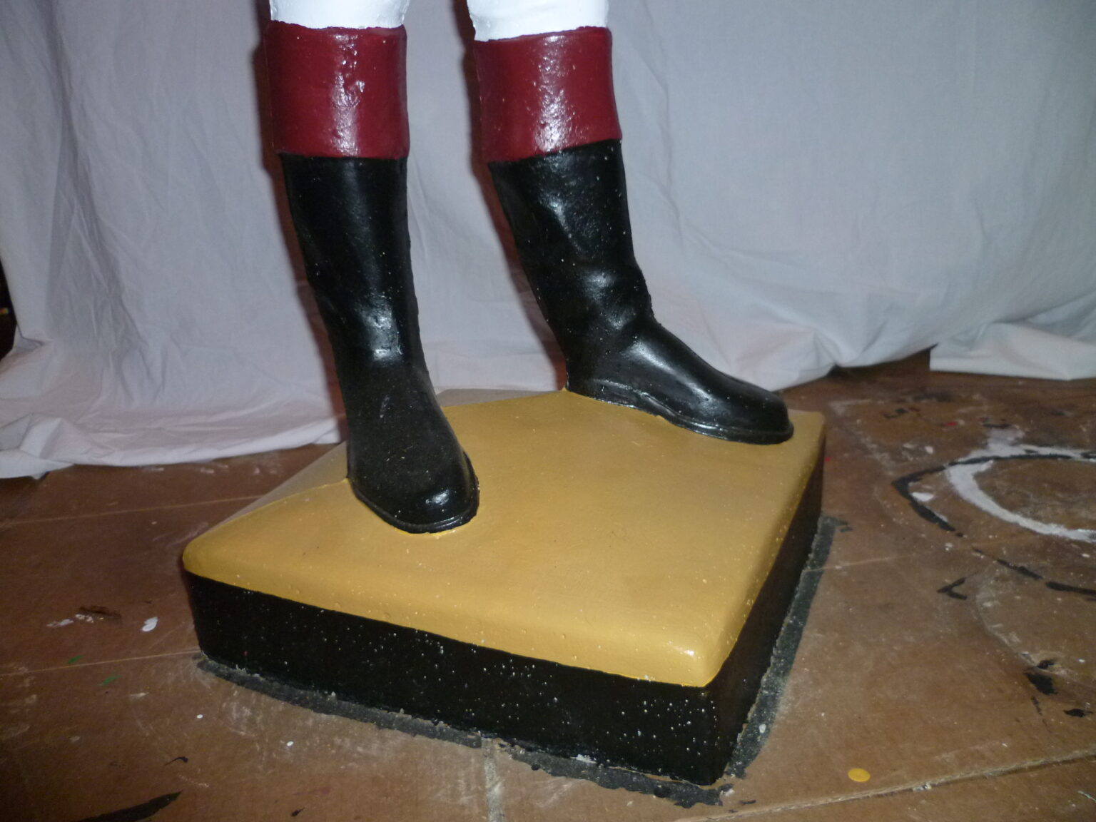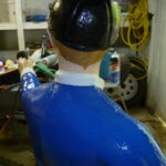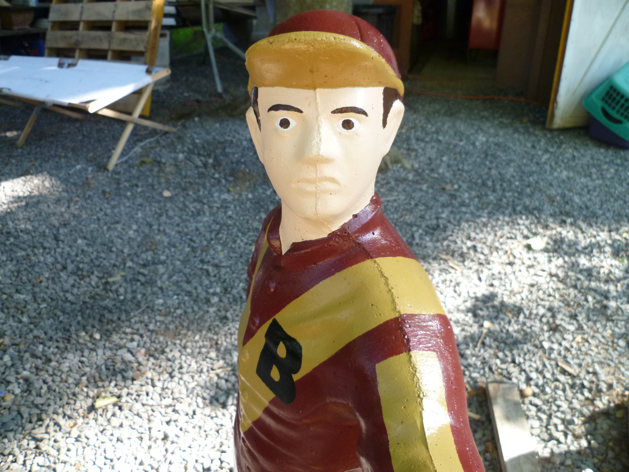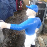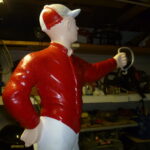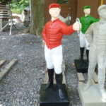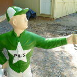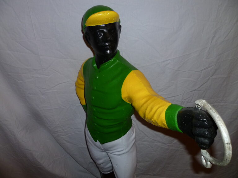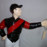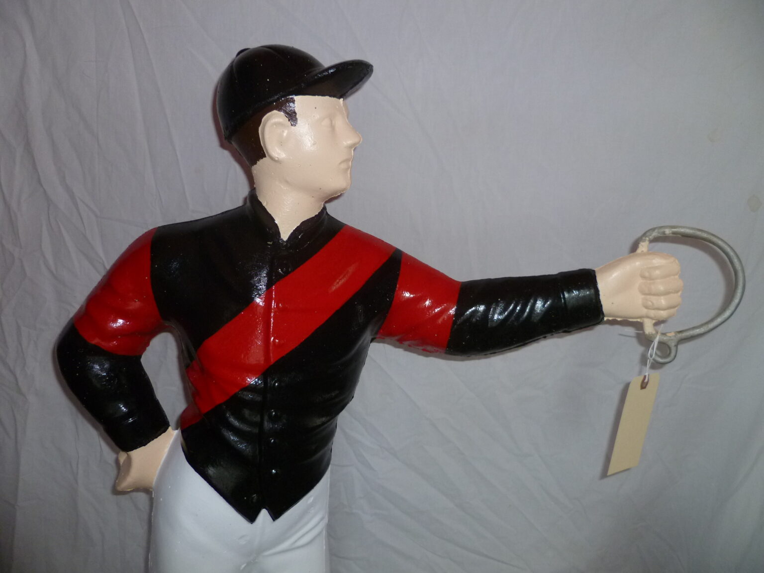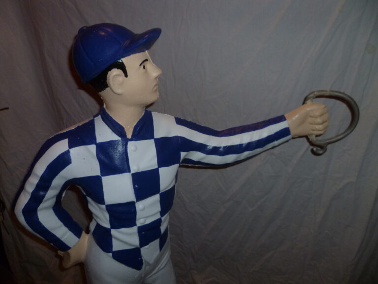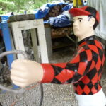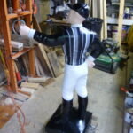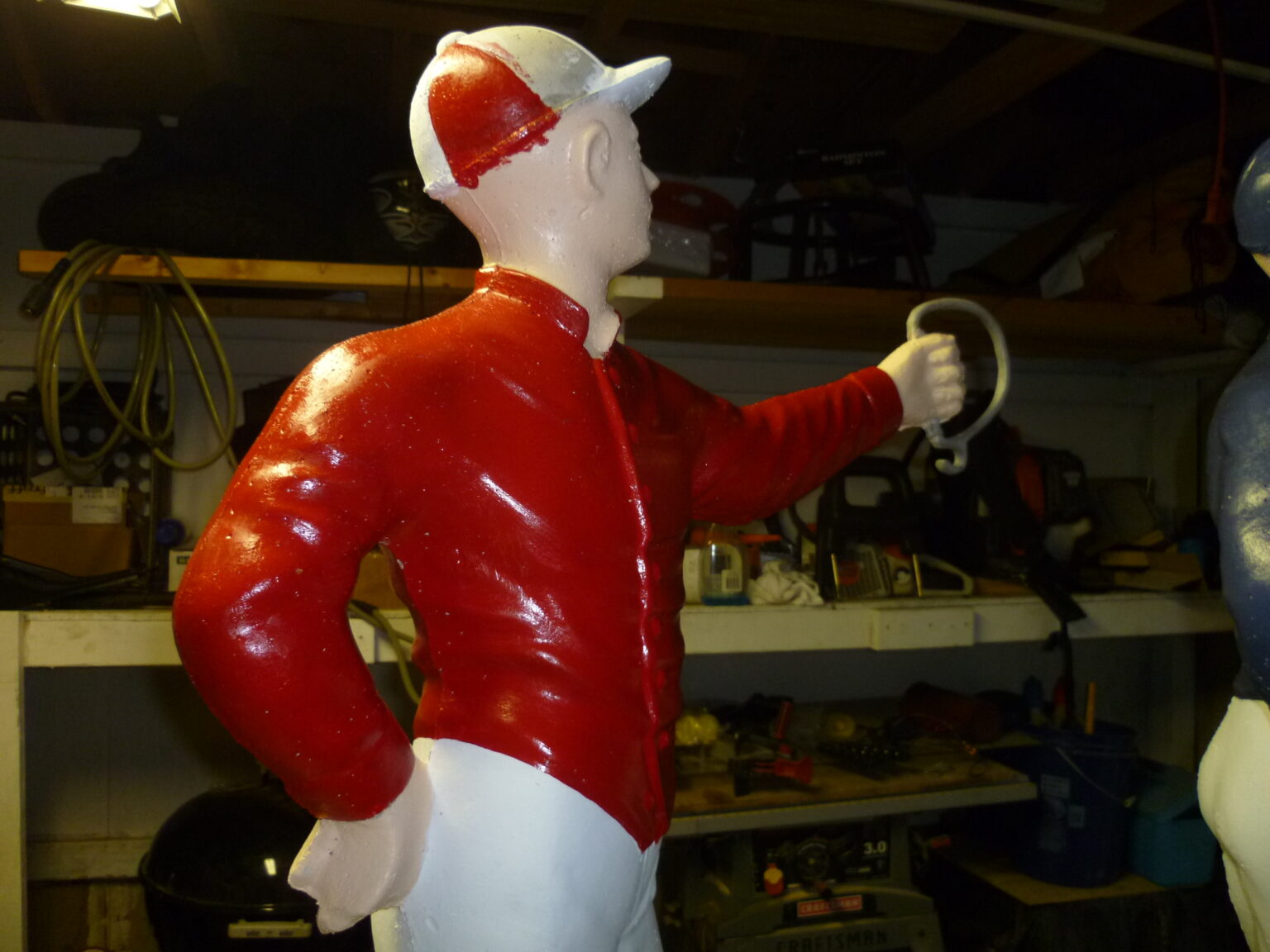 We put a lot of extra work into reinforcing our jockeys.  Look at the image (top of this page) and notice his left ankle is completely cracked.  He was backed into by a delivery driver, but is still upright.