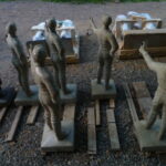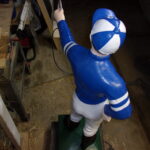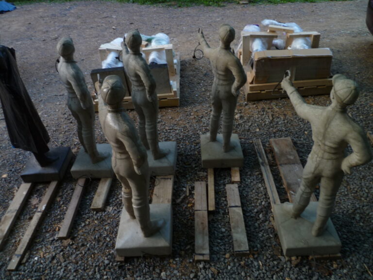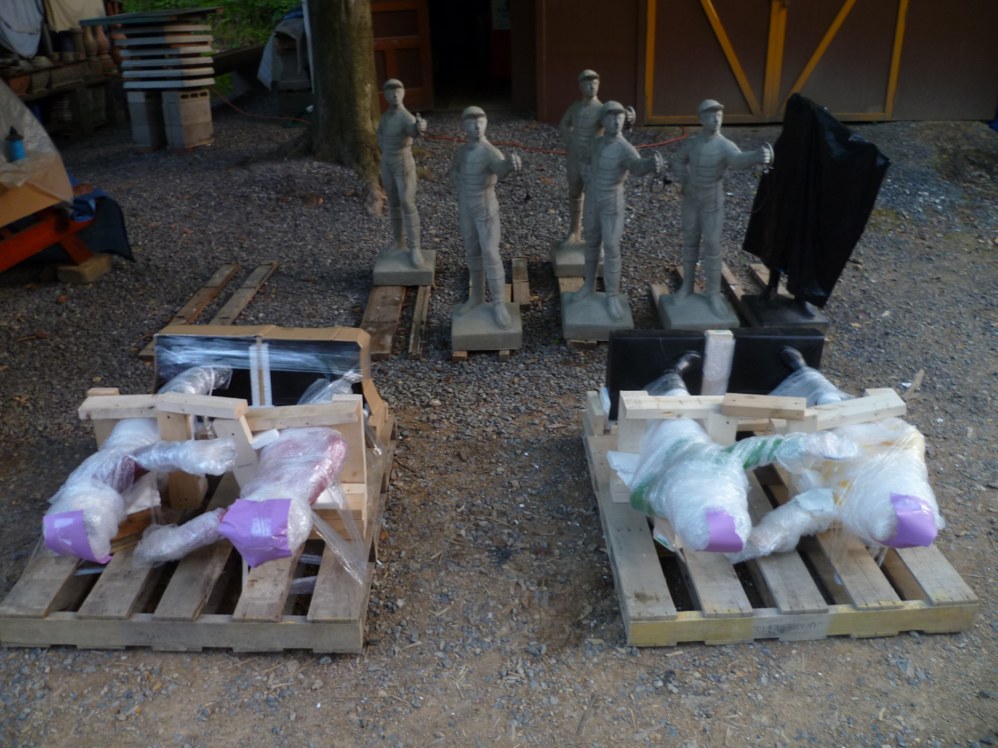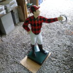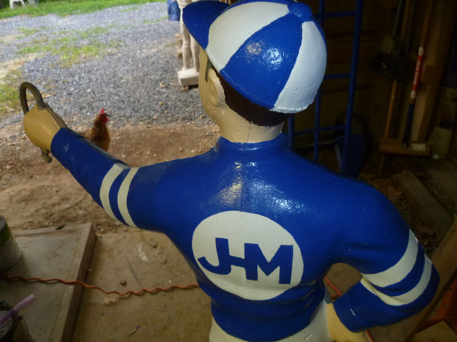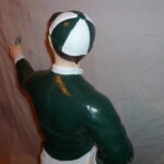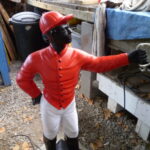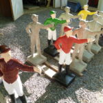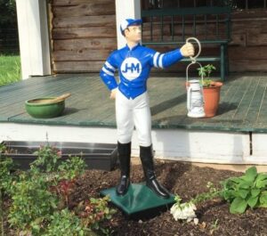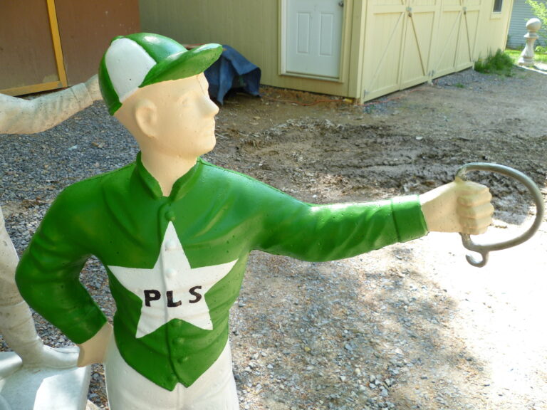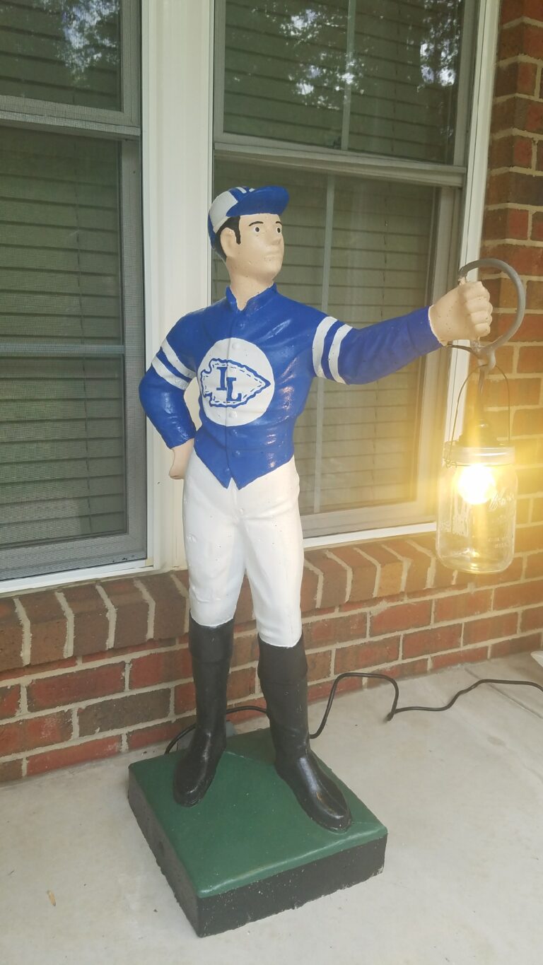 We’ve made so many of these… There’s a good chance if you’ve seen a new Cavalier Lawn Jockey on the east coast it might be one of ours. An aluminum/metal ring is integrated into the cast and is perfect for a hanging a light/lantern. Included with each jockey is a custom made pallet which makes traveling a cinch.