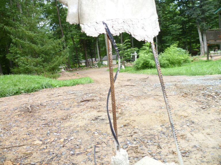 A lot of wire/metal, spans of  3/8″rebar through all limbs including the head: