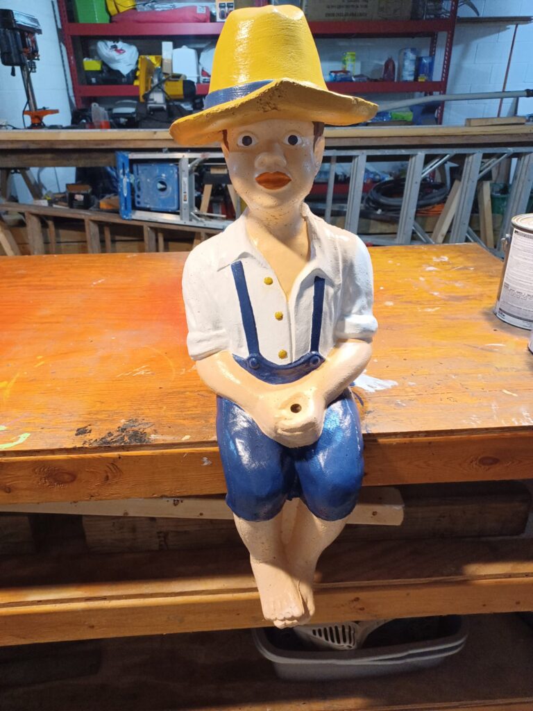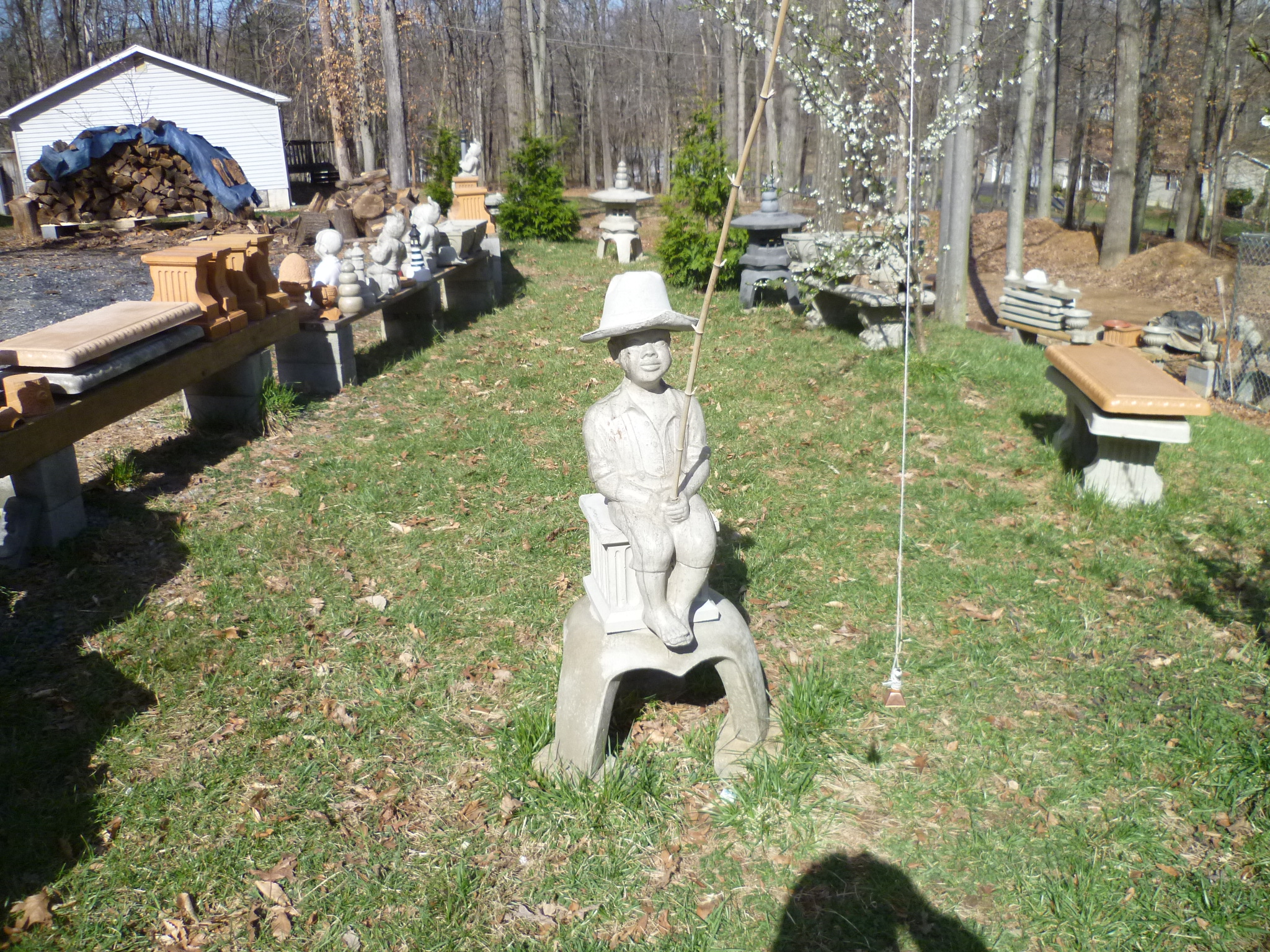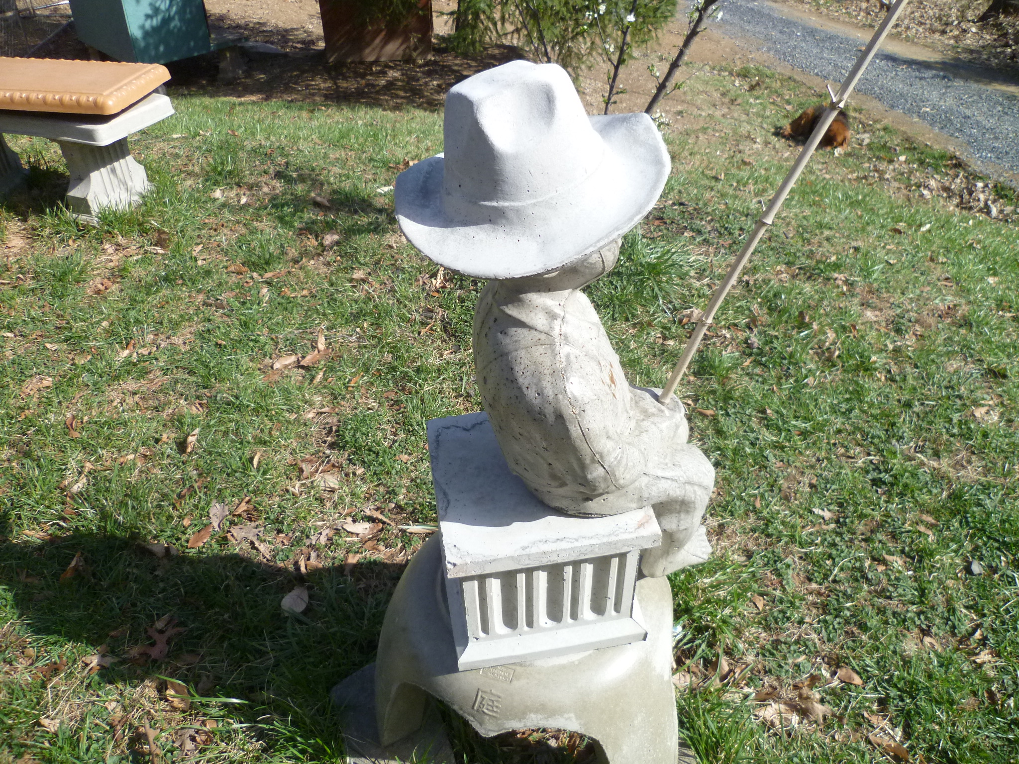 Rastus the Fisherman with separate hat and seated can be seated on a fluted base. Life-like with or without hat when holding fishing pole. The customer of the first cast we sold termed this “A Masterpiece.” It’s pretty awesome.