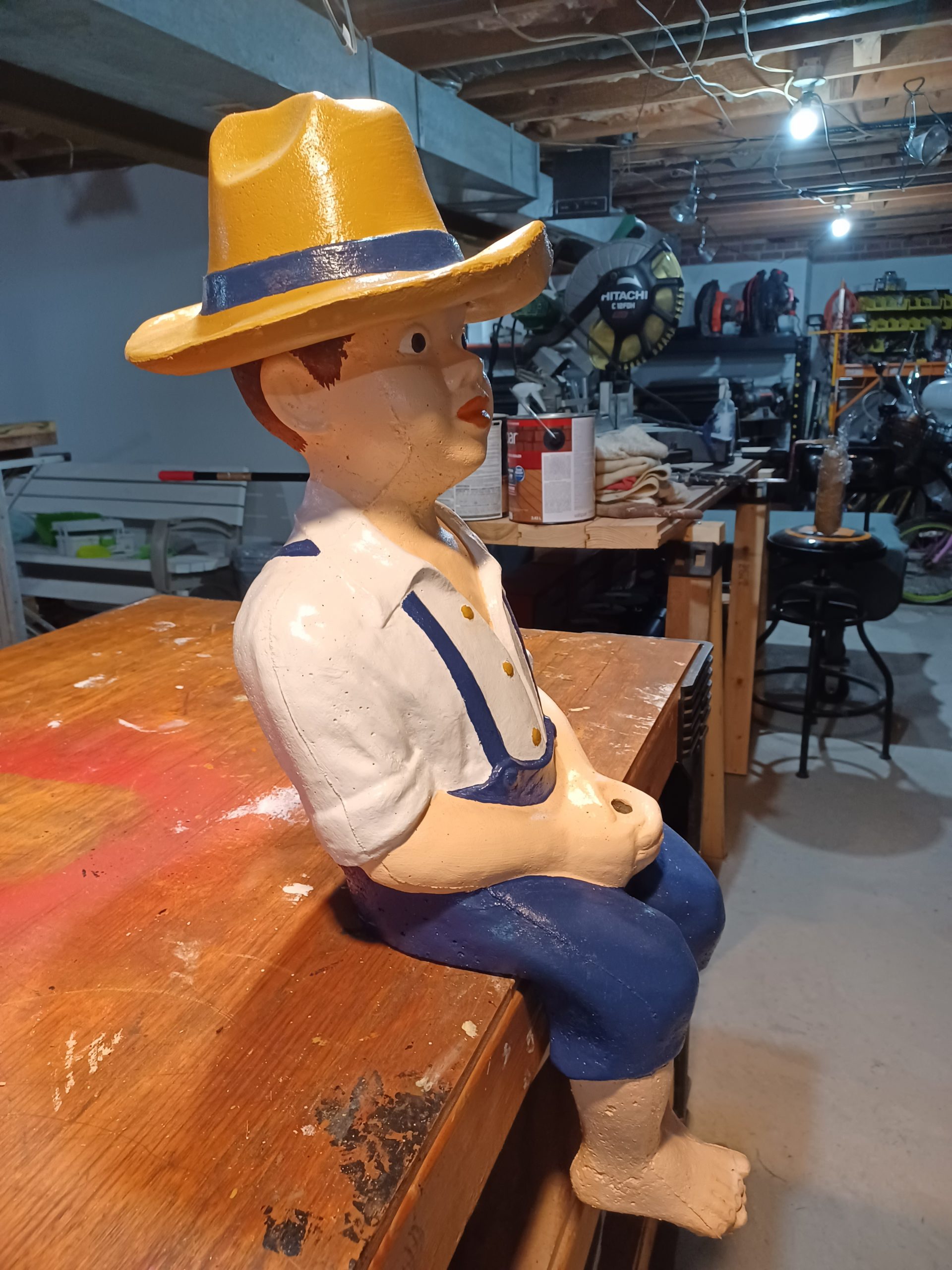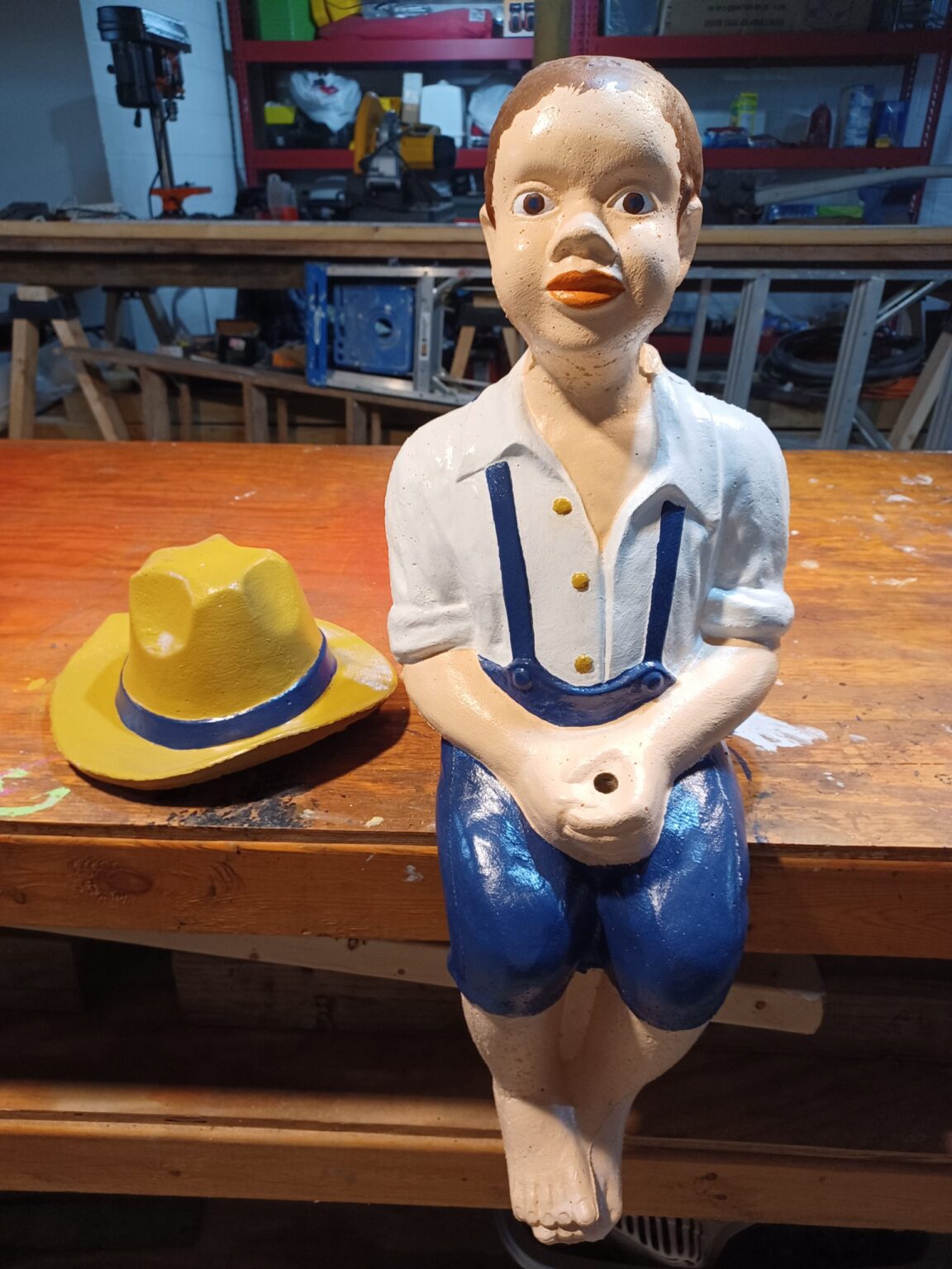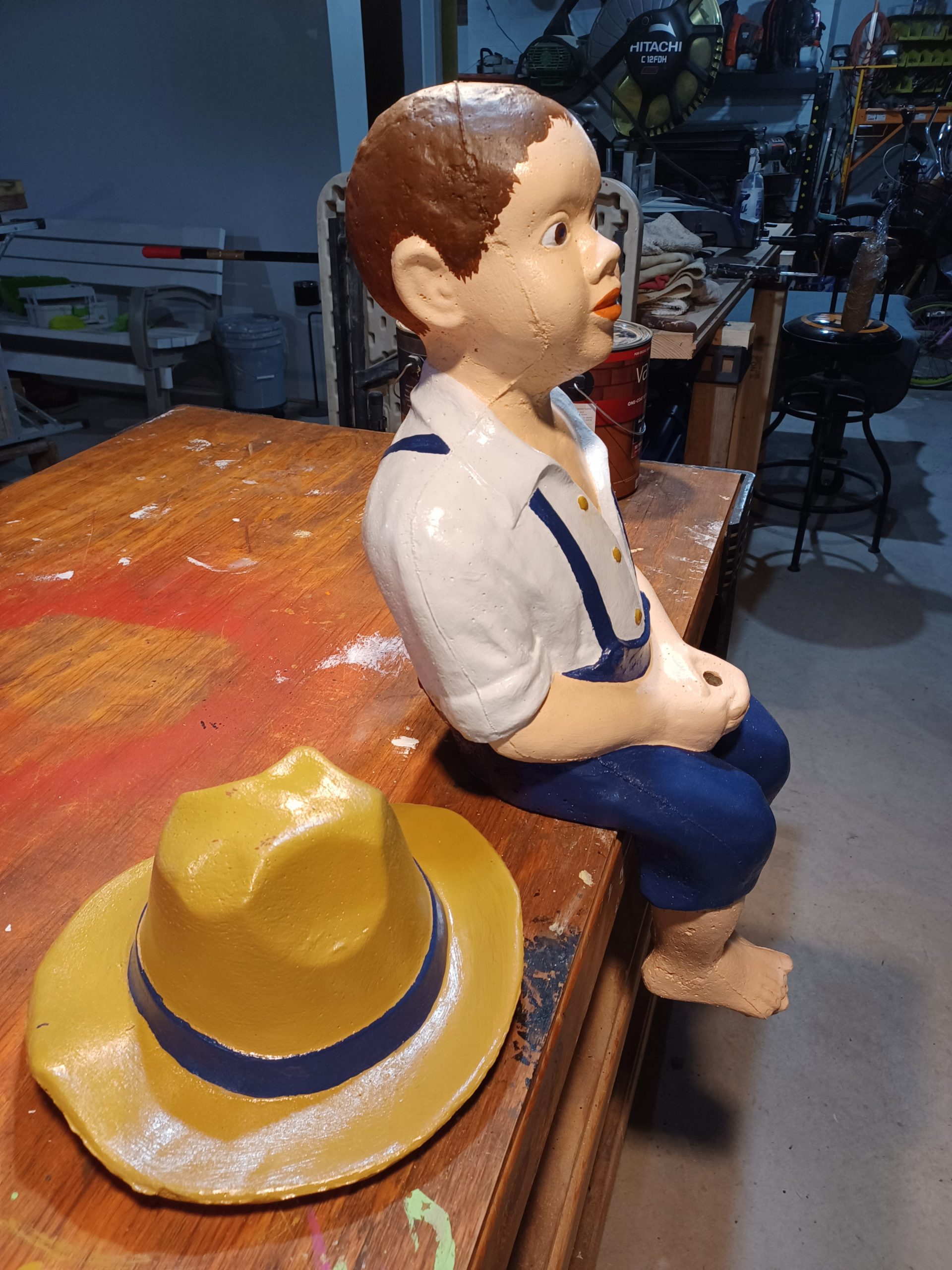 Rastus the Fisherman with separate hat and seated can be seated on a fluted base. Life-like with or without hat when holding fishing pole. The customer of the first cast we sold termed this “A Masterpiece.” It’s pretty awesome.